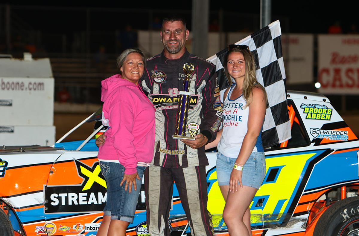 It was another weekly racing series at the Boone Speedway on Saturday night, with the IMCA Modifieds, IMCA Stock Cars, IMCA Northern SportMods, IMCA Hobby Stocks, and the IMCA STARS Mod Lites in competition. Nine 2-person Cruisers were also in exhibition with the duo of Don Mason and Jason Miller taking home the trophy.