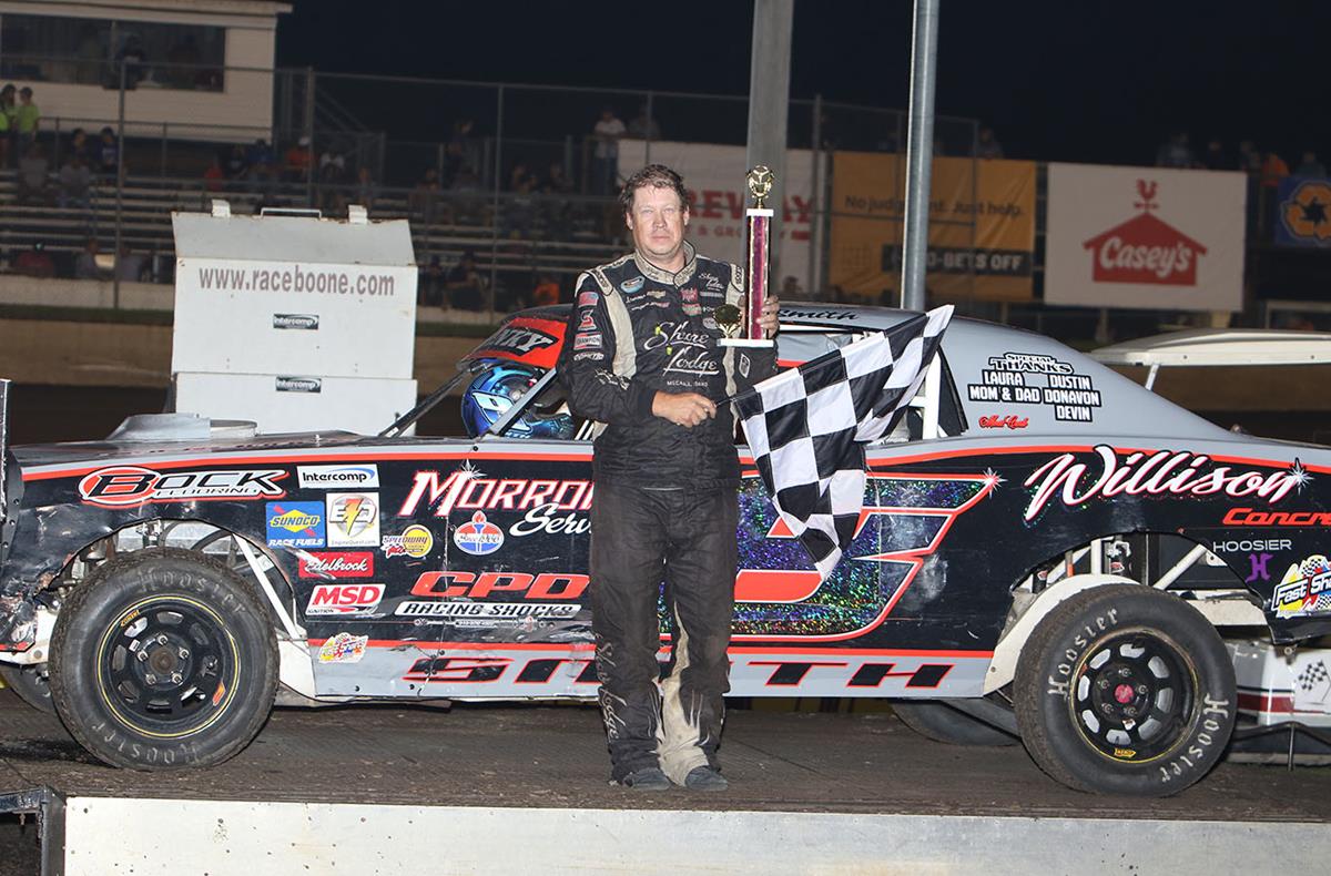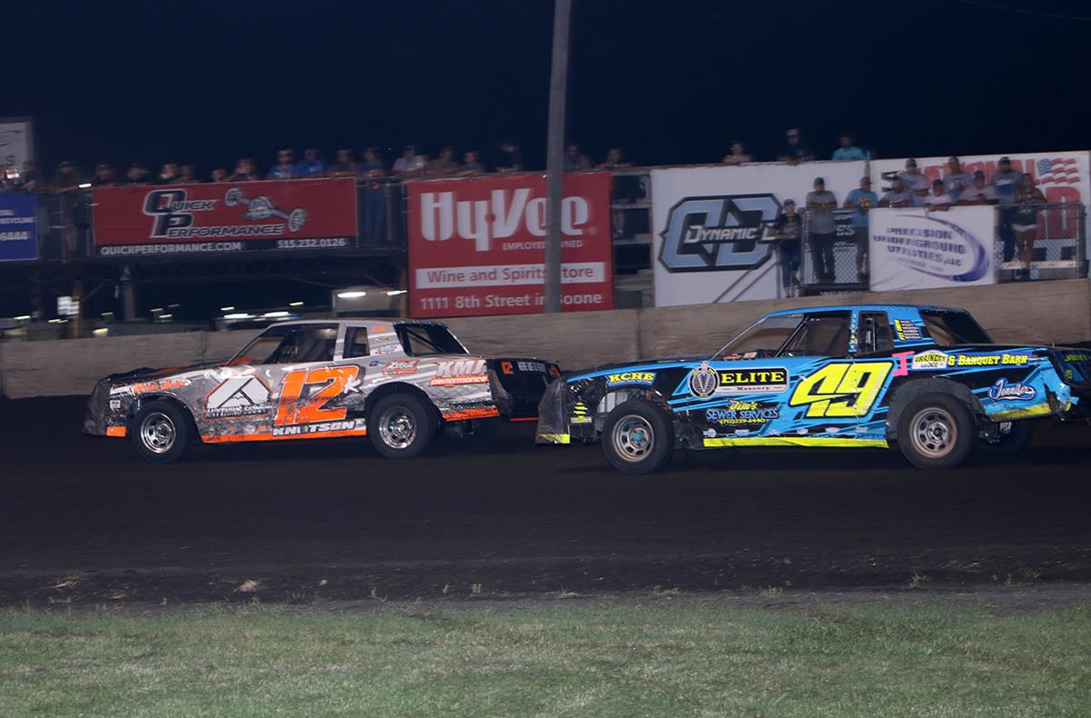 The IMCA Stock Cars, presented by Boone Moose Lodge ran their 20 lap feature caution free, with cars finding a groove high, low, and in the middle of the track.