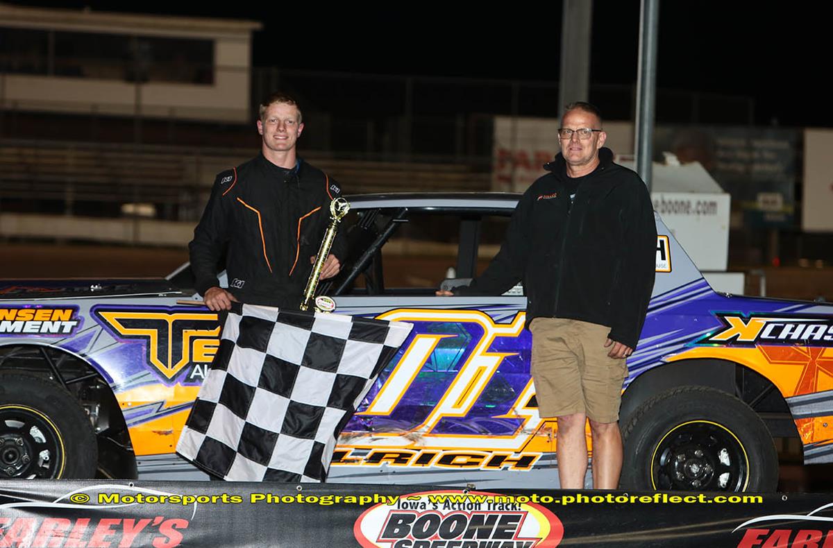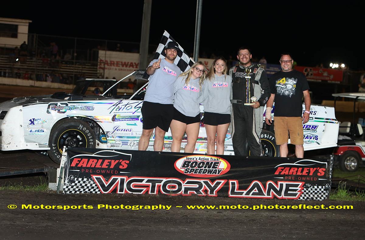 Todd Shute nabbed his second feature win of the year in the IMCA Friesen Performance Modified class, and Nick Roberts made it to Victory Lane for the first time in taking the checkers in the IMCA Sunoco Stock Cars. It was Jake Sachau seeing the winner's circle for his first regular season victory in the IMCA Friesen Performance Northern SportMods after just winning at the Eve of Destruction on July 4th in a non-track points race. Making it to Victory Lane for the first time ever at Boone was second generation racer Dayton Ullrich in the IMCA Sunoco Hobby Stocks, and Charlie Brown was an easy winner of the IMCA Stealth STARS Mod Lites.