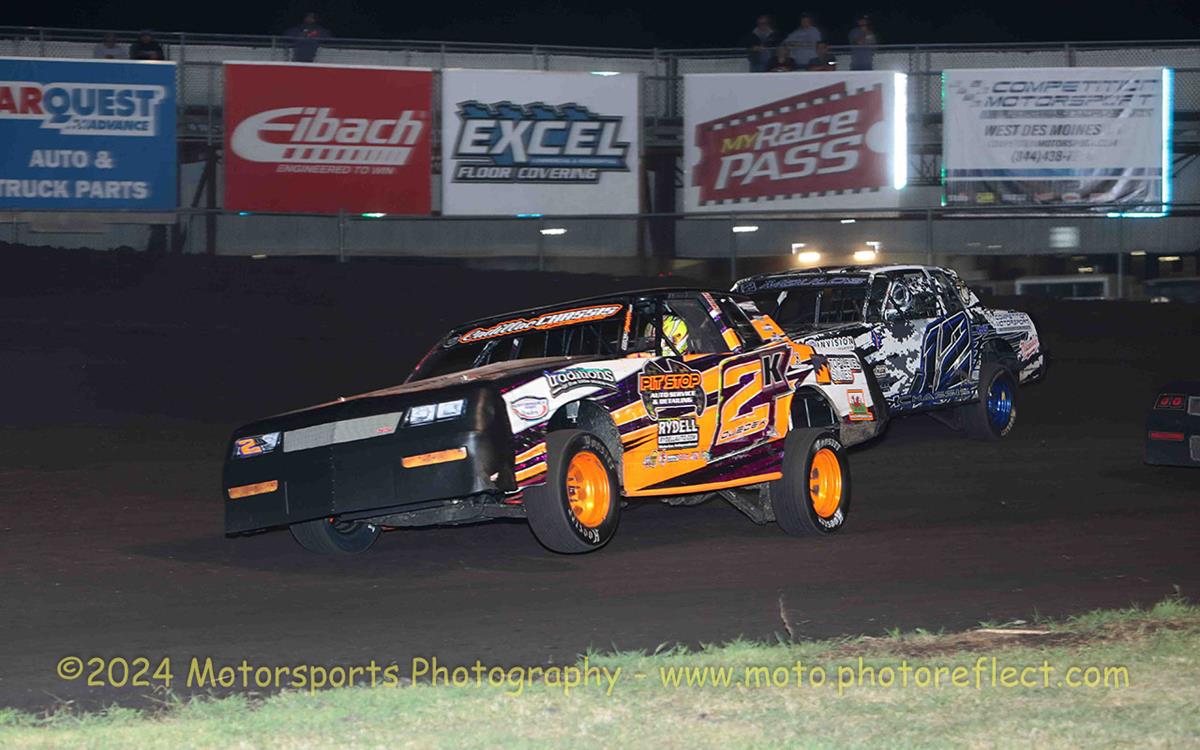 The IMCA Stock Cars went 20 laps for their feature, presented by Boone Moose Lodge.