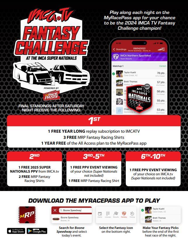 Fans are encouraged to favorite the IMCA Super Nationals profile on the MyRacePass app to receive news notifications and view the leaderboard standings for each Fantasy Challenge.